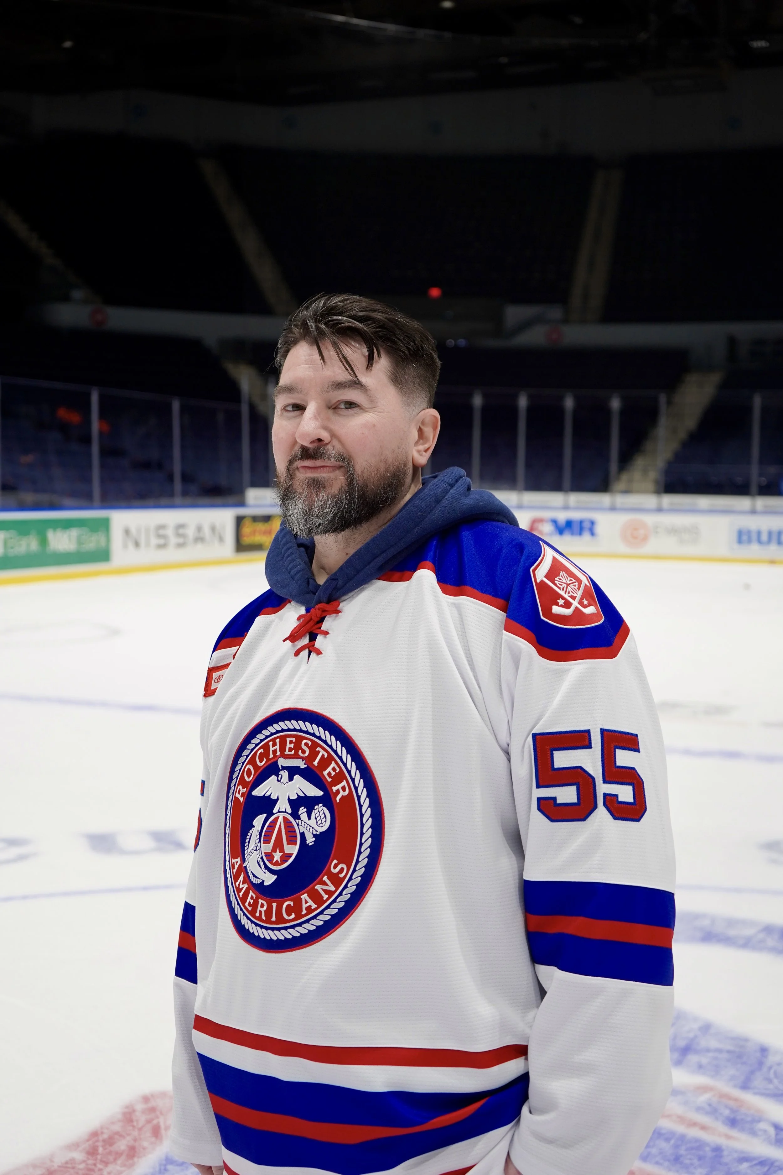 “I was medically retired from the Navy after 18 years. One day you have direction, purpose, and a sense of togetherness, and the next day you’re alone. I struggled with anger, depression, and anxiety without an outlet until I went to the Amerks Alumni skate and met some fellow veterans that felt the same. Regardless of what the team name is, Warrior hockey has given me that camaraderie and friendship missing from a medically interrupted career.
